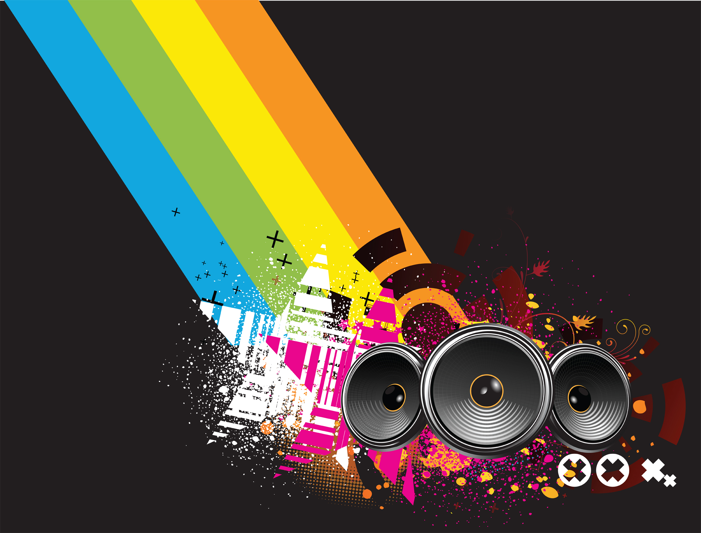 rainbow with star and speakers