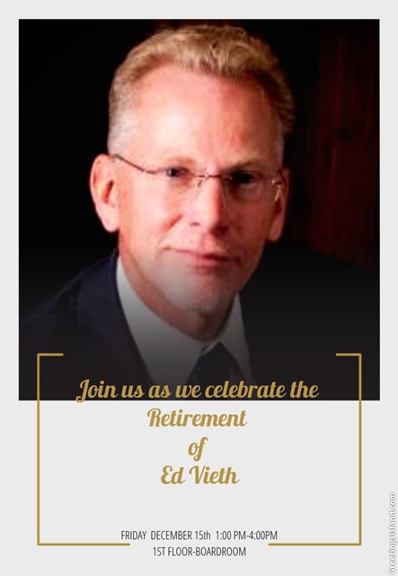 Join us as we celebrate the retirement of Ed Vieth from the Scott County Assessor's Office.