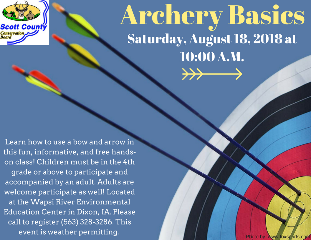 Learn how to use a bow and arrow in this fun and informative hands-on class! Children must be in the 4th grade or above to participate and accompanied by an adult. Adults are welcome to participate as well! This is a weather permitting event.